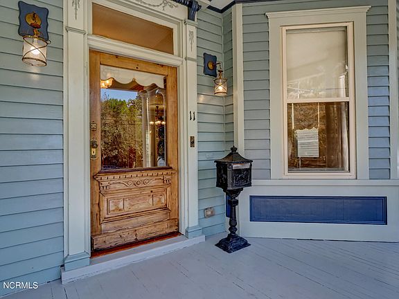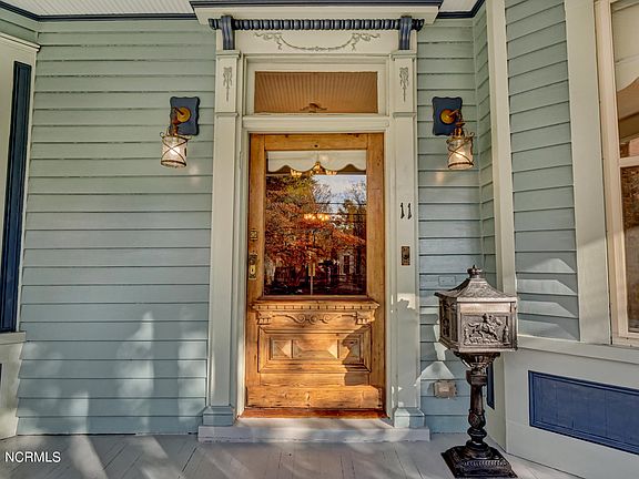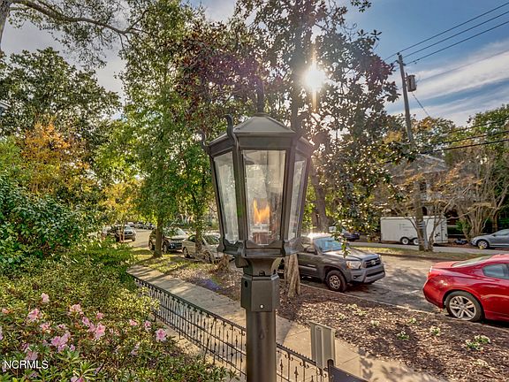 This 1904 Victorian Queen Anne home, in the heart of downtown Wilmington, has been meticulously and completely restored by the current owners. The floor plan of this 4 771 square foot home provides an abundance of open space and flexibility of use. Beautifully renovated kitchen includes walnut and maple counter tops, Carrara marble backsplash, 6 burner gas stove with griddle, built in vintage matching corner cabinets (kitchen and dining room), warming oven, wall oven and microwave unit, custom Blue Ridge cabinetry, onyx stone sink, wet bar, separate walk-in pantry, and step-up bar with unique bar back. Many original features including: 7 fireplaces (three with gas logs), leaded glass windows and skylight, refinished hardwood floors on first and second floor, crown moldings, 3 sets of pocket doors, original staircase, 5 panel doors, glass doorknobs and brass hardware, oversized and refinished vintage bath tubs, and push button light switches. The woodwork and exterior wood have been hand stripped down to the bare wood before painting. The systems and roof have all been updated. Windows are operational with storms and custom shades. You will be able to enjoy the welcoming front porch and the original iron fence, iron gate, gas lights, and tree lined street front. You also can relax on either one of the two-tier screened in porch and upper deck in the back overlooking the beautifully walled in garden area. The extra effort was taken to install the stone and metal fencing with an electric gate completely enclose the back yard which boasts two working antique fountains and a private off-street parking area. This unique property is a rare find and a spectacular place to call home.