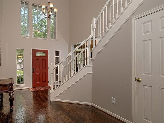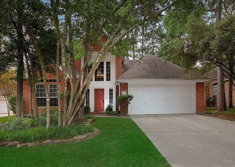 Updated Emerald home on a large, wooded lot in Alden Bridge! New carpet, recent interior paint, beautiful hardwood floors, soaring ceilings, art niches, updated fixtures in kitchen and baths and detailed trim work throughout. Open concept kitchen with breakfast bar, granite counters and stainless steel appliances (fridge included) overlooks breakfast nook and den with gas log fireplace; formal dining opens to study; master retreat down; three spacious bedrooms up; 2.5 baths; fenced yard with patio surrounded by mature shade trees has room to play! Zoned to exemplary schools and close to area park, pool, hike/bike trails, restaurants and shopping.