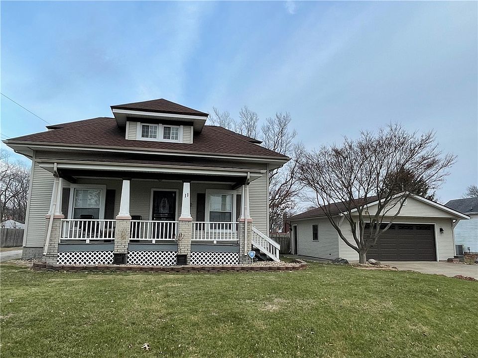 Check out this fantastic newly remodeled home. In 2021 this 4 bed 2 bath home has new flooring, paint, drywall, new bathroom upstairs, electrical in the garage, kitchen countertops, sinks, and new lighting. In 2022 the house and garage received new shingles. Just imagine yourself sitting on the cozy front porch. The home has a great kitchen that flows into a family room and large dinning room. There is also a wonderful living room and first floor bedroom. There are three large bedrooms upstairs with plenty of storage and a full bathroom. The large backyard is fenced in and has a deck overlooking the property and there is plenty of space in the detached garage. There are many possibilities with the full unfinished basement. Schedule your private showing today!