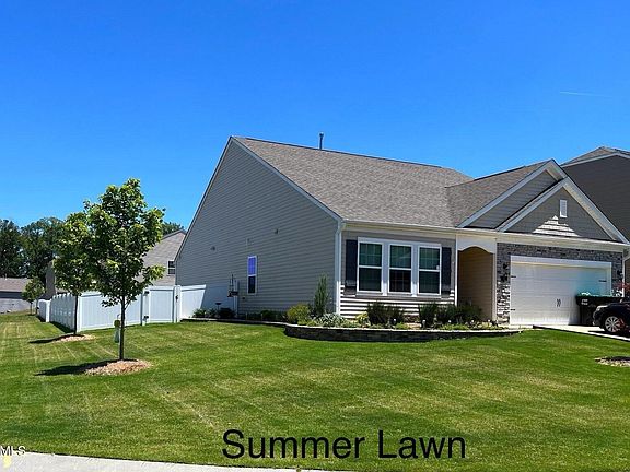 Welcome to 11 S. Great White Way, a move-in ready, 3 bedroom, 2 bathroom, ranch-style home in the sought-after community of Flowers Plantation in Clayton, NC. Built in 2018, this 1,913 square feet haven offers modern amenities and an open-concept design perfect for comfortable living. Priced to sell, so act quickly! https://order.harmonps.com/11-S-Great-White-Way Key features include: Security System that conveys to buyer; a great kitchen that is the heart of this beautiful home and includes granite countertops, upgraded cabinetry, energy efficient, stainless steel appliances, and a spacious island that's ideal for entertaining; an inviting, open living space that seamlessly flows from the kitchen into a bright and airy great room featuring a cozy fireplace. A spacious Primary Suite Retreat, complete with an en-suite bathroom, equipped with modern fixtures, a luxurious soaking tub and a generous walk-in closet! The split floor plan includes two additional large bedrooms, providing space for additional relatives, guests, or a home office. Situated on one of the largest corner lots in the neighborhood, this meticulously landscaped house includes a fenced-in yard with drought resistant Bermuda grass, a large partially covered patio, making it perfect for great outdoor living. Flowers Plantation offers a serene environment with access to walking trails, parks, and recreational facilities, enhancing the quality of life for its residents. Just minutes from Raleigh, located in Clayton, with easy access to local shops, dining, and major highways. Two shopping centers, anchored by Harris Teeter and Publix supermarkets, are located within 1.5 miles. Convenience will be taken to another level with the brand new North Waterfront District within walking distance. For North Waterfront info, visit https://flowersplantation.com/the-waterfront-district Experience a great blend of comfort and modern living at 11 S Great White Way. Your new home awaits!