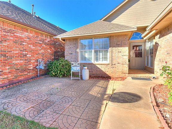 Easy living in this charming low-maintenance one-level home in East Edmond! Located near grocery stores, restaurants, and I-35, this home's HOA also takes care of lawn maintenance for easy living. Tons of natural light flood this home when the plantation shutters are open. Luxury Vinyl Plank flooring has been added throughout the dining, hallways, and living areas. Beautiful built-in bookcase and a gorgeous brick surround fireplace with wooden mantel in the main living area create a stunning centerpiece. HVAC was replaced in May 2022! See this one today!