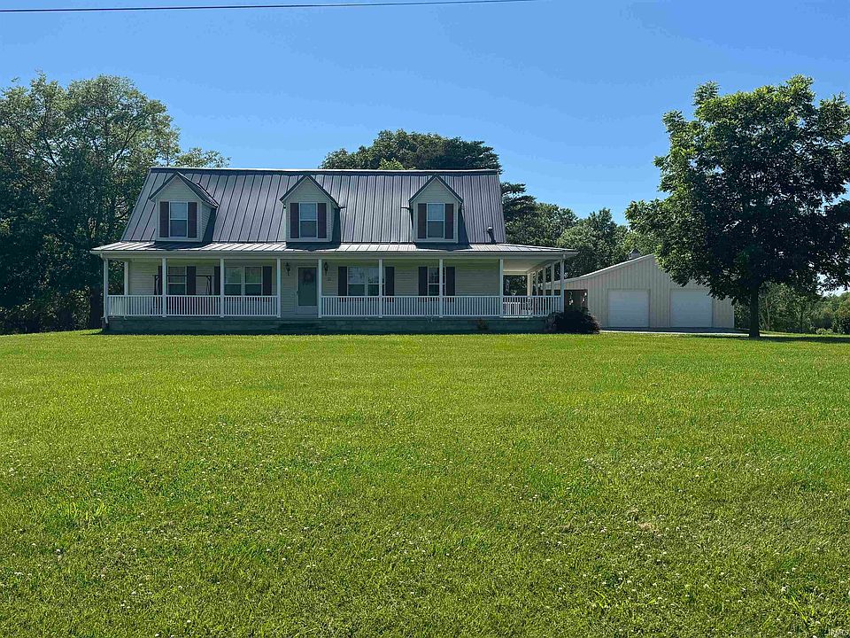 Fantastic Find in Chandler, IN! Vinyl sided Cape Cod Home boasting 3 bedrooms, 3 baths, and attached 2.5 car garage and a 30x40 pole barn on 2.9 acres of Luxurious ground! Covered front porch across the front of the home wraps around to the garage side; offering plenty of space to sit and relax upon. Front door access leads you into an inviting living room with sparkling hardwood floors. Open concept LR, DIN, KIT, FAM RM makes for great entertainment space and easy living. Dining Room with LVT flooring has wonderful extra cabinet space added and a large picture window overlooking the lawn. Chef's delight kitchen with an abundance of cabinets; plus a breakfast bar and preparation island. All appliances are included in the kitchen and there is a large walk-in pantry closet between the kitchen and family room. Fabulous Family Room that can be accessed from the covered porch via a french door and is perfect for watching that favorite sport on TV with your guests. A large laundry room between the family family room and the garage is host to lots of storage cabinets and a laundry sink. Magnificent main level suite boasts two closets, ceiling fan/light, and it's own private bath. The Master Bath features a portico window, 2 seat shower, and a generous vanity sink. Along the hallway is a full bath with tub/shower combo and built-in cabinetry linen storage. The second bedroom is located just off the living room and is currently being used as an office. Upstairs you will find a beautiful bonus room with dormer window space. A play room area that separates the bonus room from the upstairs bedroom has neutral berber carpeting. A Spacious third bedroom with dormer window space could be used as a master bedroom as there is a full bath just off this bedroom. The upstairs bath features a corner shower and pedestal sink. There is also an extra storage closet upstairs to place all your holiday decor. Mechanic/Hunter's Dream Pole Barn with it's own electricity is a delight that all will desire and boasts a side covered porch. Also included is a convenient storage shed, 1.5 car covered car shed, and RV parking space. All of this on a 2.9 acre tree shaded lot - Surely the home for YOU!!!