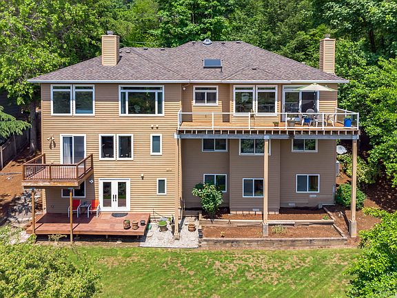 Spacious, charming contemporary home in SW hills. Large windows awash w/ sunlight from the nearly 180 deg. southern views. Top level w/ formal DR, butler pantry, open kitchen w/ eating area & attached fam. rm., formal liv rm, & office/5th BR, & lovely hrdwd flrs. New "Indow Windows." Prim. BR w/ suite, 2 addtl. BRs, 2 baths, util. rm, & bonus rm on 2nd level. Lower level w/ sep. liv quarters w/ kitchen, living room w/ gas fireplace, full bath, and BR. Quiet, private, & great for entertaining!