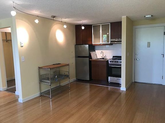 Beautifully-remodeled eco-friendly studio on the ground floor facing east toward the South Waterfront District and Mt. Hood. Owner pays water, sewer, garbage. Tenant pays electric.