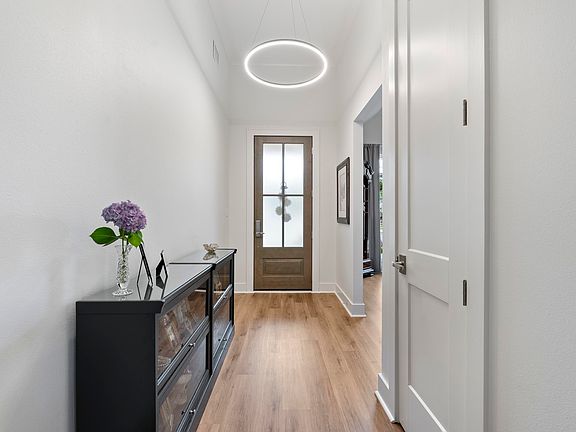 This thoughtfully upgraded home blends modern style with everyday comfort—and it’s packed with features that make it stand out. From the moment you walk in, you’ll notice the upscale feel: solid 8’ doors throughout, statement barn doors, upgraded lighting and plumbing fixtures, and a premium kitchen appliance package. The open-concept great room features soaring 14’ ceilings and floods with natural light, while the seamless connection to the screened-in patio—with its cozy fireplace—creates an inviting indoor-outdoor living experience. The spacious primary suite feels like a retreat, with a spa-inspired bath that includes a jetted tub, large walk-in shower, ample natural light, and generous closet space. Additional upgrades include powered Duette blinds, solid surface flooring (no carpet!), and beautiful finishes from top to bottom. Lawn maintenance is included, giving you more time to enjoy your home without the hassle. Located in a friendly, connected neighborhood and backed up to green space for added privacy—this home truly offers the best of both worlds. Meticulously maintained, smoke-free, pet-free, and gently lived in—affordable luxury is waiting. Come see it for yourself!