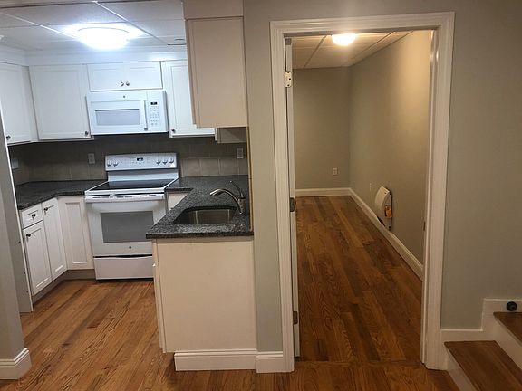 Woburn - close to center, Updated 3 room 1 bedroom, hardwood floors throughout, Kitchen has lots of cabinets, granite counter tops , dishwasher disposal fridge stove, recessed lighting, good size bedroom and private patio area, there is off street parking on a first come first serve basis and street parking, coin op laundry on site, electric heat ( not included ) Tenant pays for electricity and hot water. NO PETS OR SMOKING ALLOWED 1 year lease first month security deposit and 1/2 month realtor fee to move in