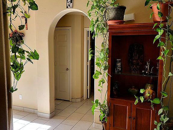 Ceramic tile, except bedrooms. Water heaters under kitchen and master bedroom sinks. ADT and 24/7 private security system. Dawn to Dusk lighting in front and back. Walk in shower in master bath. Ceiling fans in all rooms. 4 established trees with drip system and grass in back yard. Small storage shed. Custom made shelves in two car garage. Fire hydrant in front of home.