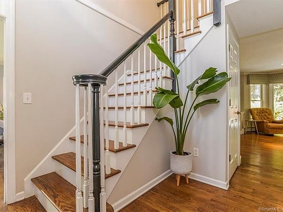 Spacious updated front porch Colonial in desirable East Lyme neighborhood! 2 story open entry, 4 bed/2.5 baths with over 3000 sqft. of generously sized rooms, and a new roof in 2019. Youll fall in love with the renovated kitchen bathrooms, and the hardwood floors throughout! An open concept offers sight lines from the Soapstone center island kitchen into the family room with fireplace, as well as into the formal dining room. The private living room also makes a perfect home office or guest room. Architectural details on the main level include French doors with transom window, crown molding and charming built-ins! The sun filled master suite has a full bath, and gorgeous distant views through the custom windows. The finished lower level has designated work and play space, as well as an abundance of storage. The large, private yard offers room to roam with a private back deck and decorative pond.
