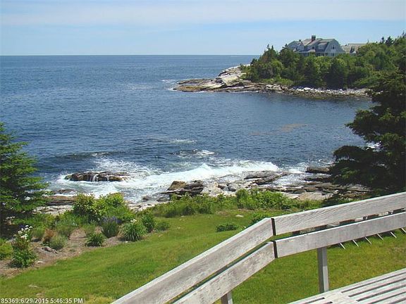 Spectacular oceanfront residence with 203' of the most dramatic and impressive frontage on the Atlantic, just north of Pumpkin Cove. The residence is strategically located well above the shore so at high tide the surf can thunder in, breaking on the granite ledges below, producing mountains of white foam that explode several feet into the air with every wave! From the deck and most windows in the house, the panoramic views stretch east across the ocean to Monhegan and south out to the open and bold Atlantic!