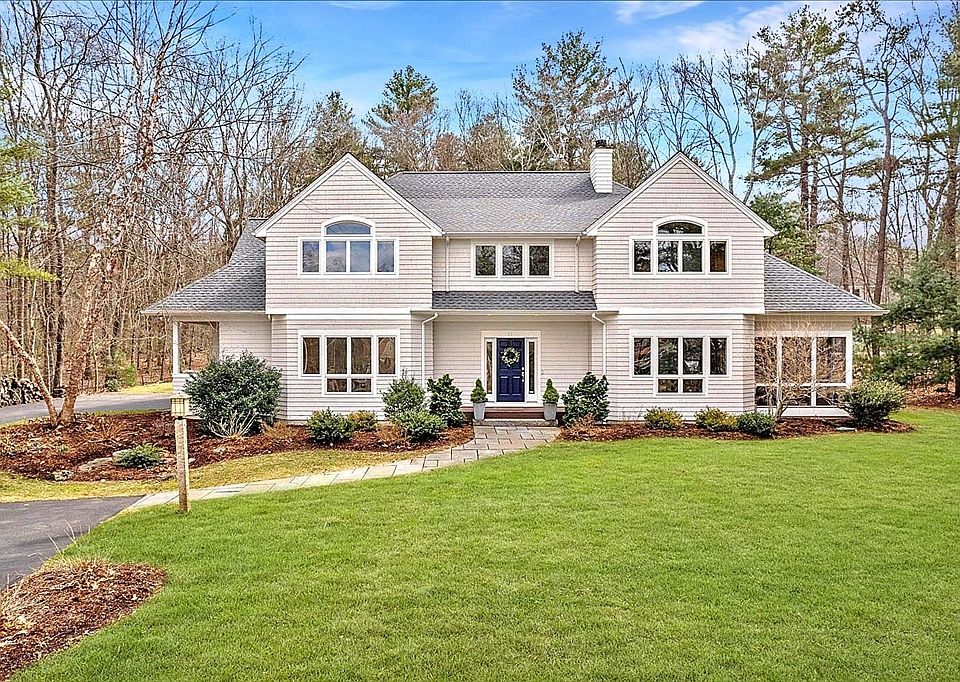 Exceptional 5BR 4BA Shingle Style Contemporary Colonial perfectly set at the end of a cul-de-sac abutting the 82 acre Pegan Hill Reservation on the Dover/South Natick line! Soaring ceilings, an open concept floorplan & the abundance of natural light welcome you. The heart of the home is the gorgeous eat-in kitchen-stainless appliances, induction cooktop, ample island-which is open to the fabulous fireplaced family room w/vaulted ceiling & access to the wonderful screen porch. An entertainment sized dining room w/beautiful built ins, fireplaced living room, home office/5th bedroom, full bath & mudroom complete the first floor. The second floor boasts a lovely primary suite w/walk in closet & luxurious spa like bath, three additional generously sized bedrooms, two baths & laundry room. Inviting back patio and gardens. Attached 3 car garage. 2024 roof. Minutes to the Natick, Wellesley or Needham commuter train, restaurants and shops. Extensive list of updates.