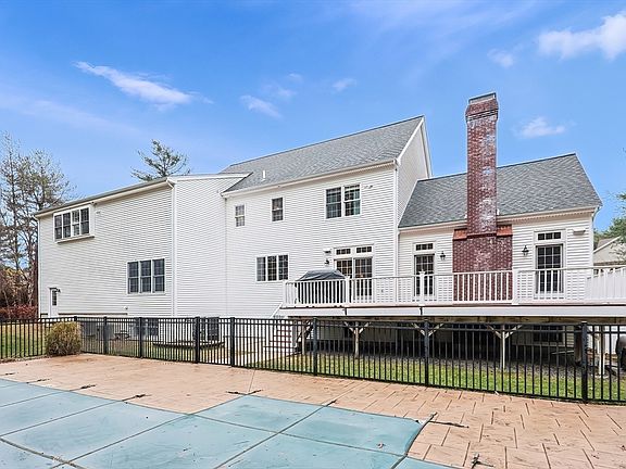 MILL FARM ESTATES in East Mansfield. CUSTOM BRICK FRONT Colonial on a private cul-de-sac. Builders own home, This property abuts 23+ acres of NRT LAND for the utmost of PRIVACY. CUSTOM Country kitchen w/ high end cabinetry, granite countertops, tile flooring, walk-in pantry, SUB ZERO refrigerator & SS appliances and wet bar area. HUGE 20 x 24 Vaulted FAMILY ROOM w/ Stone fireplace, Dining room w/decorative moldings, 1st floor home office, 1st floor bedroom w/ full bath nearby. SECOND floor has 4 bedrooms. PRIMARY SUITE is 22 x 24 with walk-in closet, custom Bathroom with jacuzzi tub & tiled steam shower, laundry room & 2 additional FULL bathrooms. THIRD floor is HUGE 22 x 26 Bonus room, ANDERSEN WINDOWS, 14 x 30 deck overlooks HEATED in-ground pool with surround patio, GAZEBO & FIRE pit, 3 CAR heated GARAGE, Upscale landscape with irrigation system, PUBLIC water & sewer, 6 zones of heat, 3 zones of central air. ALL this located in a subdivision of 50 additional homes.