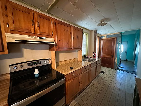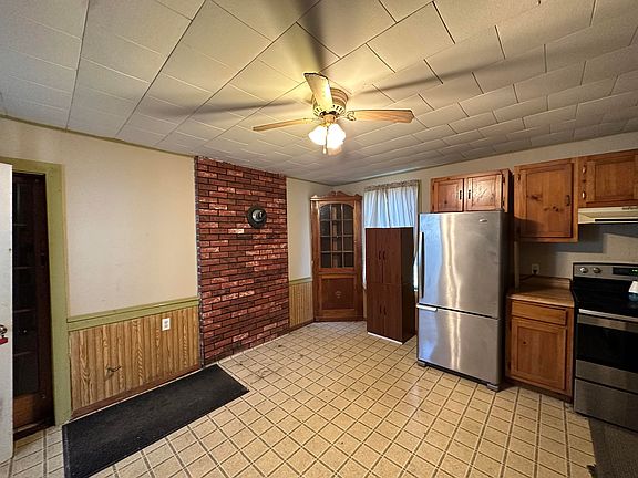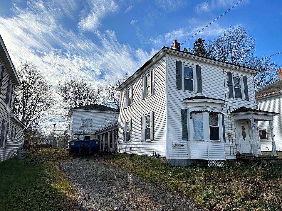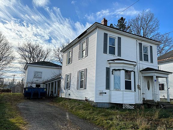 Looking for affordable housing? Check out this 2 story, 2 bedroom home located in the quaint village of Monticello. First floor has eat-in kitchen, dining room and living room with Harmon pellet stove. Second floor has two bedrooms and full bath with washer hookup. Open porch on east side. FHA furnace with new oil tank in 2021. Workshop with separate circuit breaker. Attached shed needs attention. Newer storage shed. Bring your tools, make updates to suit your needs and build equity. Near public access on North Branch of Meduxnekeag River. South line of property belongs to the Town of Monticello and used as a playground and ball field.