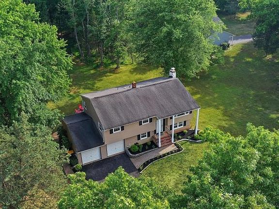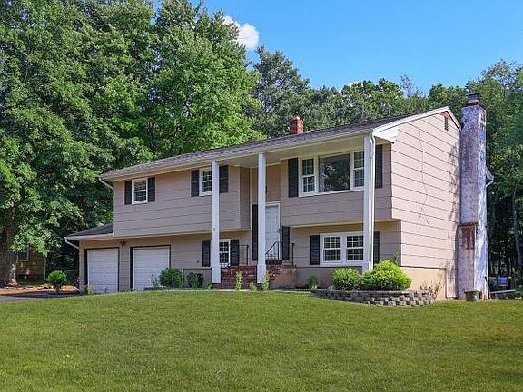 Parklike setting on almost 1 acre of a wooded paradise! Updated bi-level with 4 Bedrooms 2.5 Bathrooms + Office in the Woods Rd. section of Hillsborough. Turn key home offering Hardwood flooring on upper level and Laminate flooring on the lower level. The Kitchen was remodeled in 2017 when a peninsula and additional cabinets were added. There are Granite Countertops and the Kitchen Cabinets were repainted in June 2022. The Main Bathroom was updated in 2018 and has a single vanity and a jetted tub/shower. The Master Bedroom has an ensuite bath (updated 2020) with shower stall and single vanity. Fresh paint throughout. 2 Car Garage with shelving/cabinets and a work bench. The Lower Level has a Bedroom, Office/Gym Area, Laundry, and Family Room with wood burning fireplace and doors to the exterior. Built in Fire Pit. Exterior was painted in 2016. New Deck 2021. New Driveway 2022. AC 2020, Energy Star Windows 2015.