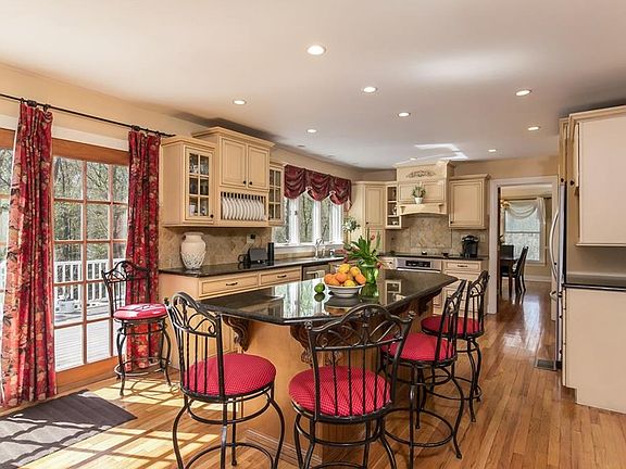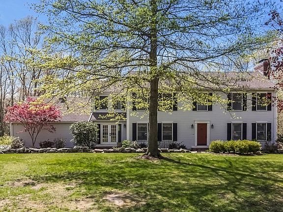 A beautiful 5 bedroom, 3608 square foot colonial with plenty of privacy at the end of the cul-de-sac. Upgraded kitchen with granite counter tops, walk-in pantry, and large center island flows easily to the formal dining room and living room with wood burning fireplace for entertaining. The home features custom raised paneling, crown molding, hardwoods, ample storage, and three fireplaces. A large mudroom, foyer, office, and laundry room complete the first floor. Spacious upstairs bedrooms including a master suite with fireplace. Private back yard features a large deck with pergola and in-ground pool for outdoor entertaining. Finished walk-out basement with an additional 1496 finished square feet with home gym, game room, and additional living room. The neighborhood is situated for an easy commute to New Haven, Hartford, and New London with I-95 and I-395 access minutes away. This property is move-in ready!