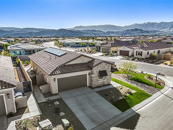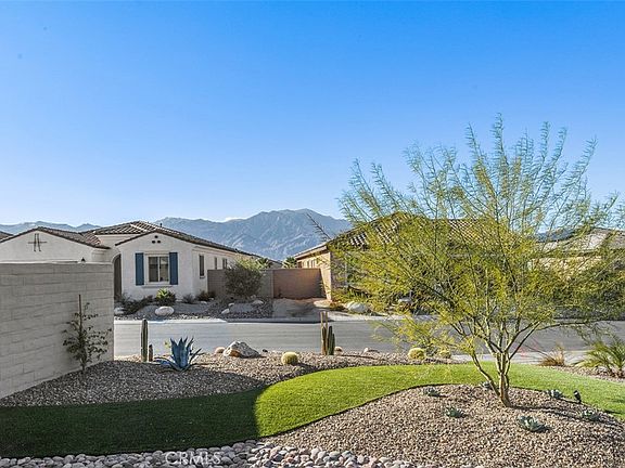 $40,000 PRICE REDUCTION: Escape to your ideal retreat in the heart of the Desert's premier 55+ community - Del Webb Rancho Mirage. This "GETAWAY" model has beautiful mountain views from the backyard and approximately $100K in landscaping to provide the ultimate resort living with the bonus of OWNED SOLAR and a luxurious inground SPA. This home invites you into a world of tranquility and style. Step inside and experience the allure of an open-concept design seamlessly uniting the kitchen and gathering room. Bathed in abundant natural light, this inviting space becomes the perfect backdrop for creating cherished memories. All windows have roller shades. The kitchen, a culinary masterpiece, showcases exquisite quartz counters, and top-of-the-line appliances, and a large pantry catering to all your storage needs. Entertain effortlessly or unwind in the gathering room, where a cozy fireplace sets the tone for a warm and inviting atmosphere. Retreat to the King-Sized owner's bedroom, a sanctuary with a private ensuite bath boasting dual vanities, a walk-in shower, ample closet space, and linen storage. Your guests will be treated to stunning mountain views from the private guest room, with easy access to an adjacent bathroom. Life becomes more convenient with a thoughtfully designed laundry room (washer/dryer included) and an oversized garage. Outside, savor the beauty of custom landscaping, breathtaking mountain views, a spacious patio, and a relaxing spa, creating an oasis in your own backyard. Whether you're seeking a full-time residence or a part-time getaway, this property is the epitome of comfort and luxury. Come, explore the unparalleled offerings of Del Webb Rancho Mirage today and make this haven your home!