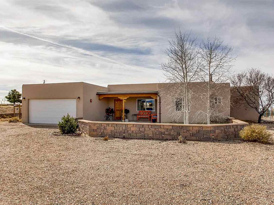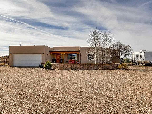 Don't miss this incredibly well maintained, charming home! Very light, bright with high beamed ceilings, Open kitchen and living area. Great bedroom separation, large master suite on one side away from the other two bedrooms! Views from every window. It sits on over one acre with one side bordering a very large greenbelt with western, sunset views! It looks out across another greenbelt with big views of the Sangres de Cristos. This is a gated community with great access to Hwy 599 and I 25 for the ALB and Los Alamos commuter.