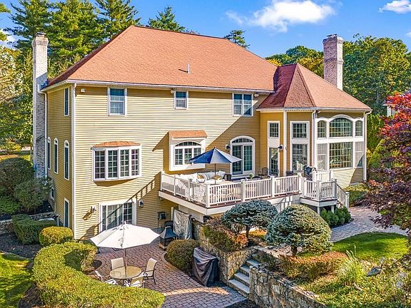 ONE OF NORTH READINGS MOST SOUGHT AFTER EXCLUSIVE NEIGHBORHOODS. This home is better than new. Absolutely stunning backyard oasis with heated Gunite pool, pool house with plumbing and koi pond. Two story foyer. First floor has high ceilings. Private home office with wainscoting. Living'/dining room combination perfect for entertaining. Newly renovated kitchen with mostly new SS appliances, center island, white cabinets and quartz counters is open to a dramatic two story family room with a beautiful wall of windows overlooking the private backyard. Stone wood burning fireplace. Second staircase leads to large master suite with walk in closet with custom shelving. Totally renovated master bath with oversized tiled shower with seat and dual shower heads. Double vanity with quartz counters. Large soaking tub. Three additional large bedrooms with HW floors. Walk-out lower level has a a 3/4 marble bath, exercise room, media room with bar area. Attached 3 car garage. Perfect floorplan.