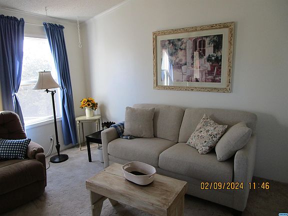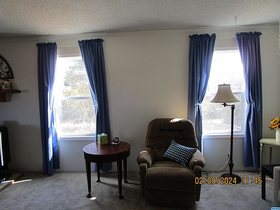 Step through the front door and feel the tranquility of this lovely home. The living room is spacious and open to the kitchen. All the appliances convey and there's cupboard space galore along with an island work center and an alcove for the microwave. The utility room is enclosed and complete with washer and dryer. The primary suite is roomy with the bathroom featuring a walk-in shower. The entire home is taped and textured. The front entry is a covered porch with a one car carport and a covered patio in back. The yard is fenced with a drive-in gate, and the home has a stone perimeter foundation. This property has been well loved and cared for! NOTE: The septic system is brand new. The home is retrofitted and title is deactivated.