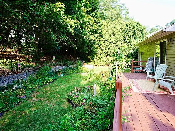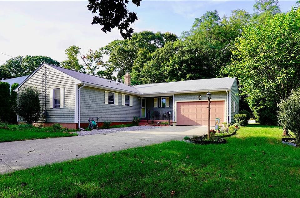 Attractive grey cedar-shingled six-room ranch in desirable Cowesett area, close to schools, shopping and dining.Built in 1992, this well-maintained home has large sun-filled kitchen, three bedrooms, two full baths, open-concept living/dining area, huge, dry basement and a one and a half car garage. Central air, gas heat. Hardwood floors and tile throughout. Lots of closets & storage space. Great for entertaining! Private yard & gardens with hundreds of bulbs and flowers, 3 sliding glass doors open on to a long back deck along entire length of house. Cute sitting porch will be fun to decorate for the different holidays!