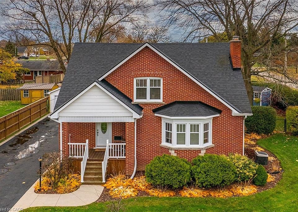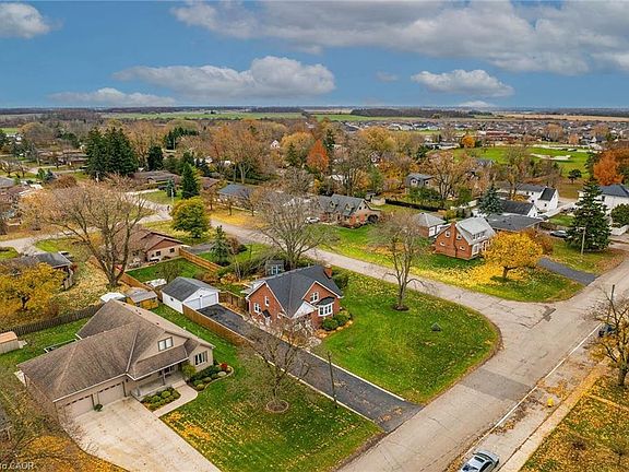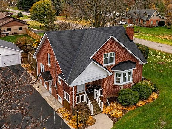 Beautifully presented 4-bedroom, 2-bathroom home situated on a spacious 87’x132’ corner lot in one of Hagersville’s most sought after neighbourhoods. Conveniently located within walking distance to park, tennis courts, a public pool, splash pad, schools, groceries, hospital, shopping and downtown eateries. The flowing interior offers about 2,500 sqft of distinguished living space with elegant modern décor highlighted by beautiful hardwood floors on both levels. Includes 3+1 bedrooms with large lighted closets, 2pc powder room on the main level and 4-pc bath upstairs. The open concept main floor contains a living room with gas fireplace and a bay window, 4th bedroom or home office, large gourmet eat-in kitchen with island, granite and stainless-steel appliances adjacent to a recently refinished, heated & insulated sunroom with skylight, overlooking the fully fenced rear yard with privacy hedge. The partially finished basement includes a family room with electric fireplace, laundry room, den and utility/storage room. The hobbyist will enjoy the 20’x25’ garage/workshop/mancave with 2 overhead doors and a dug well (not used) that’s ideal for outdoor irrigation. Fantastic curb appeal with original brick exterior, tidy landscaping, fresh asphalt driveway with concrete borders and plenty of parking, plus a private backyard complete with oversized deck & pergola area making the perfect outdoor entertaining space. Easy commute to Hamilton, 403, & GTA. This fantastic home offers the perfect blend of character and modern comfort. Must view to appreciate the attention to detail this stunning home has to offer.