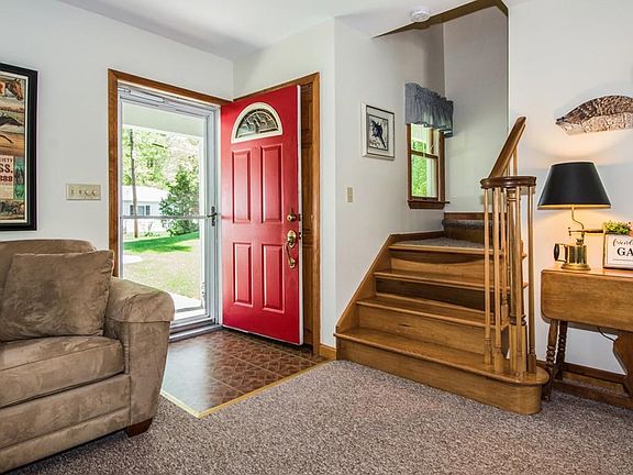 Fully recreational Hamilton Reservoir - 400 acres of year round fun, sports, beauty and peaceful lake vistas. This mint home has an open floor plan, special features, upgrades and private outdoor space. Enter this lovely, sun filled home to find amazing lake views from most windows. There are two bedrooms plus an office/bonus room with closet storage on the second floor. Vaulted ceiling master en-suite. Remodeled bathrooms. First floor laundry. You'll want to spend your indoor time in the "Lake Room" where you'll feel like you're soaring over the water. Your outdoor space has a 20' aluminum dock, PVC Kayak storage rack, custom stone walls and steps right into the water. The deck and landing have great entertaining and relaxing areas. Fish right off the stone wall, go for a refreshing swim, kayak or have a pontoon party. Be sure to read the Feature Sheet and see the floor plans. Level, wide, tiered poured concrete steps to the water equal no flood insurance and a little exercise.