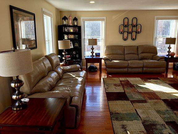 REDUCED PRICE!! Spectacular colonial with PRIVATE BEACH on ARLINGTON POND. Stunning year round views from 3 floors! Ground level entertaining or IN-LAW POTENTIAL living space - features sliders to the beach, summer kitchen with granite topped island and counters, full bath and laundry. Main floor open concept hardwood floors, to the deck, half bath and full appliance kitchen. Second floor has 4 spacious bedrooms, 2 balconies, a fabulous full bath and walk up to the 'ready to finish' attic. Outdoors many of the fun extras to stay - 2 stationary and 1 floating docks, fire pit, custom 12 ft. picnic table and sweet heart swing. Listing agent is related to sellers.