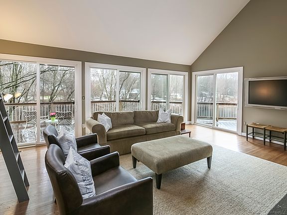 Come visit this beautiful lakefront home, on a cul de sac, in the desirable Greens Farms neighborhood. The minute you enter this home you will notice the special features from the rustic barn door to the scenic lake views from almost every room. You will spend many days on the wrap around deck having your coffee or just enjoying the view. Canoeing, swimming, and ice skating are just a few of the activities you and your family will enjoy. The interior does not disappoint as you enjoy the updated gourmet kitchen and relaxing Living Room with vaulted ceilings and stone fireplace. On the upper level you have a luxurious Master Bedroom with Master Bath and walk in closets and three other bedrooms. A special nook for storage or secret play area for the kids completes the second level. In the lower level you have another scenic walk out rec room/den with a stone fireplace. Lots of storage also on this level. Exterior pictures coming soon!