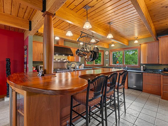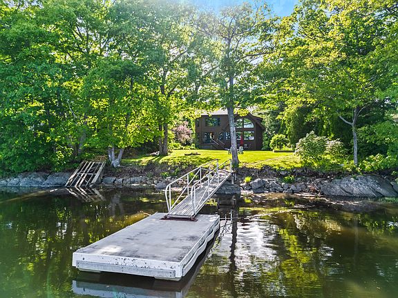 Stunning Custom Contemporary Post and Beam with soaring cathedral ceiling, huge windows, balcony, Cook's gourmet custom mahogany kitchen with huge island, 2 suites on 2nd floor. Primary BR has huge picture window and is oversized with bath, including jacuzzi tub and separate shower, 2 sinks, mahogany cabinets. Landscape islands with beautiful perennials plus your own dock for high tides. Views include sunrises, moonrises, ferry boats to Boothbay, kayakers abundant wildlife (eagles, osprey) and more. Don't miss this gorgeous property!