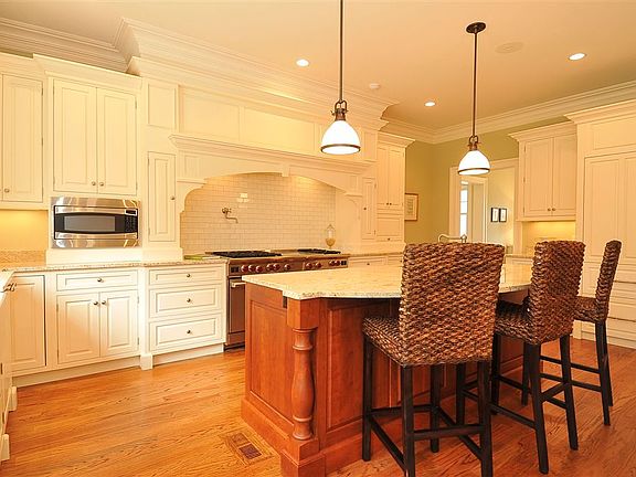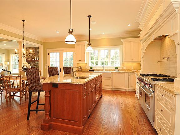 New stylish shingle style home with great curb appeal and elegance by award winning RR Builders featuring a great floor plan, custom design and luxurious architectural details and amenities. Beautiful light filled home with 5 great size en-suite bedrooms, fabulous chef's kitchen that opens to beamed family room with stone fireplace, handsome library with fireplace and built-ins, large front to back mudroom with built-ins and bathroom, fabulous dining room with butler's pantry, upper level large laundry/craft gallery. French doors open to the private and level yard with no wetlands surrounded by stately perimeter evergreen. Classic stone walls & Belgium blocked circular flat driveway with parkout. Close to town, schools the train & more!