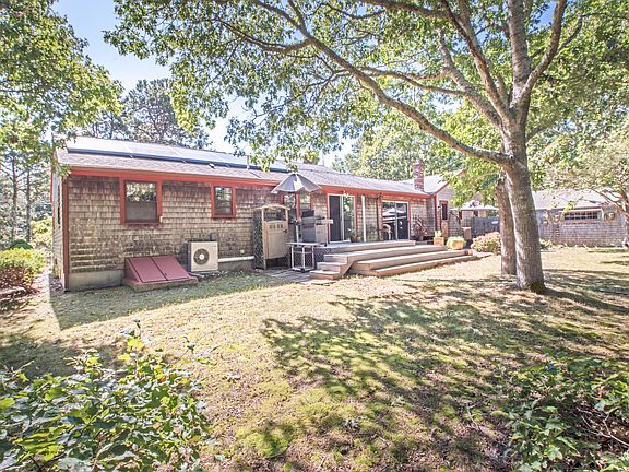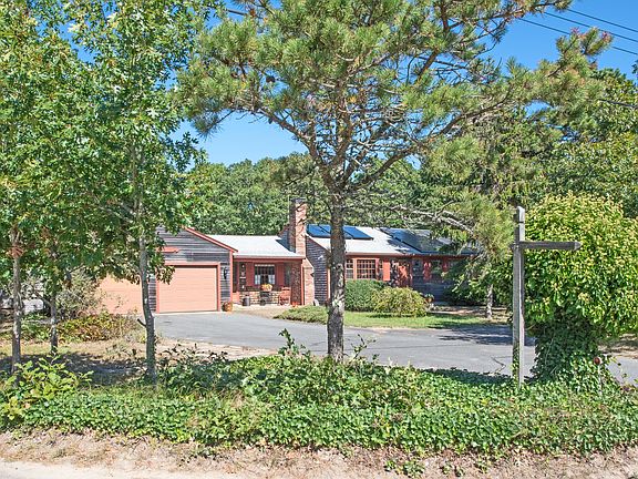 You will love this charming and comfortable ranch-style home, which the owners call Snow Hill Ranch. This home is on a level lot in central Truro. Built for the current owners and never rented, this home is on the market for the first time. As you enter the house, you arrive at an inviting family room with a vaulted ceiling, a corner gas fireplace featuring sliding glass doors with access to a large deck and patio, and a yard featuring a serene private wooded view. This area is the perfect space to relax and enjoy the sounds of nature or dine outside. The floor plan continues to the kitchen, with an eat-in dining area that flows into an inviting living room with a fireplace, hardwood flooring, built-in bookcases, a south-facing front door, and a bay window. The home's three bedrooms and renovated bathroom are on the same level. The home has a large open basement room, a separate room with a washer and dryer, an additional refrigerator, a workshop area with a bulkhead basement door to the outside, and a separate room for the home's mechanical systems. The attached two-car garage features a remote-powered door opener.There is a new solar power roof array for the home's hot water supply and a leased solar power array for electricity, which provides a dependable fixed monthly low-cost utility bill. Key outside features include a spacious yard with a garden shed and two outbuildings. In addition, there's a large fenced-in area for a garden or animal and the Cape Cod favorite- a hot water outside shower. The home is close to Snow's Field, Jams convenience store, the Truro PO, and all beaches. This home will be a fantastic year-round vacation home or rental investment property for the new owner. This house is a turn-key property, sold fully furnished. Call for an appointment to visit today and live your dream of owning a home in Truro.