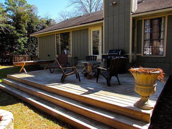 Remodeled and Move In Ready. New Hrdwd & Tile throughout. No Carpet! Granite tops and Stainless appliances. Refinished cabinetry. New HVAC, water heater, toilets, interior doors. Freshly painted interior. Exterior repainted & Lg back deck added in 2013. 54 ft covered front porch with porch swing. Large shaded fenced in backyard with outdoor fire pit. Great value in Spanish Fort School District.