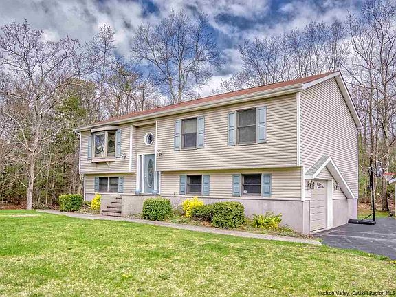You will be very surprised when you drive up to this immaculately maintained Raised Ranch on 2.9 private acres. This well cared for home is ready for you to move right in. Large living room open to the dining room that then leads to a nice sized back deck where you can enjoy your coffee and listen to the sounds of nature. Large open eat-in kitchen so you are still able to be part of the party. 3 ample sized bedrooms, primary with full bath. Full finished basement great for family and friends to gather. 3 bay detached 53x30 garage with electric, heat and water. The middle section of the garage has a 14ft garage door perfect for an RV or boat. The possibilities are endless... Convenient location just minutes to NYS Thruway, Woodstock, Rhinecliff Bridge.