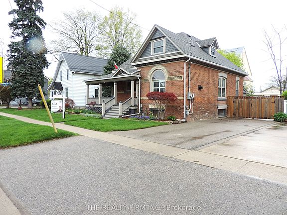 Aylmer Stunner! This spectacular 1.5 story brick century home is nestled amoungst the historical homes in a great family friendly neighbourhood. This 4 bedroom, 2 bath family home exudes charm and character throughout- with it's large wrap around covered porch,stained glass windows and more! A perfect blend of old and new with lots of modern updates, this home is move in ready and an oppourtunity not to be missed! Large principle rooms with high ceilings and original hardwood gleem in the sunlight. A bright spacious family room central to the home leds to a cozy living room with gas fireplace. A beautiful formal dining room has original details and porch access- a perfect place to relax at the end of your day. 2 bedrooms complete the main floor or convert one to a home office. The home continues on to a large modernized kitchen with updated countertops and flooring, and has a large eat area which overlooks the rear yard. There is a generous sized mudroom newly updated with main floor laundry and porch access.The timeless character of this home extends upstairs with 2 nice sized bedrooms, both with skylights for extra lighting.The large primary bedroom boasts a large walk-in closet.Both bathrooms have been updated.Downstairs offers additional living space with a rec.room ready for family movie or games night,and even a sauna!The basement offers lots of storage space complete with workshop and an exterior access.A backyard oasis with wooden deck, newer wood fencing all the way around and newly added playground.The backyard also has a nice sized wooden shed and newly added driveway extention- parking for all your larger toys .Other noteables include:updated 200 amp service, EV charger station, custom window coverings, and freshly painted exterior including porch, soffits and facia. Amazing location close to all amenities, minutes walk to 2 schools, shopping and more. A must see!! Quick possession available.
