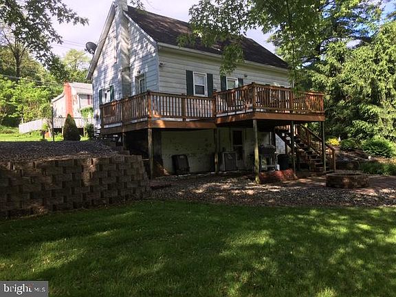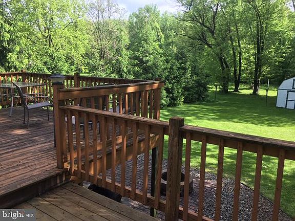 Home's setting is superb. Large kitchen and dining area, hardwood floors, ceiling fans, large deck overlooking rear yard, very private patio, lower level with brick walkway and retaining wall. Nice home. Needs some TLC, mostly paint.