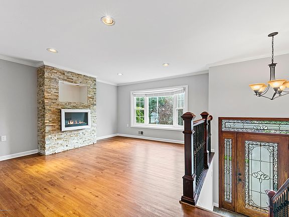 Welcome home to this beautifully refreshed bi-level home which will charm you the moment you pull in the driveway! The beautiful flower beds, paver driveway & stone front are warm & inviting. Enter into the open & bright foyer with beautiful wood railings and neutral paint! Upstairs features a spacious living area, beautiful custom built stone mantel w/ an electric fireplace, crown molding and bay window overlooking the front yard.The remodeled eat-in kitchen offers granite countertops, tiled backsplash, stainless appliances, updated fixtures and lighting. 3 bedrooms complete this floor all of which offer fresh paint, and a full bath with neutral tile and an updated vanity. Downstairs houses the laundry, half bath, 4th bedroom,and bonus living area perfect as a family room or game room.