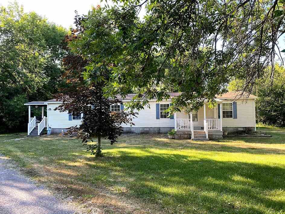CHARMING doublewide home on 2.65 acres of land located on the outskirts of Massena with Massena Electric and access to the Grasse River. The home offers a large kitchen with new flooring, center island and eat in area. The living room has sliding doors to back deck along with a formal dining area. The master bedroom has a large walk in closet and a master bath with soaker tub and separate shower. There are two additional bedrooms with a common bathroom. The laundry is on the main floor and the washer and dryer do convey along with the kitchen appliances. The home has town water and a 1000 gallon concrete septic. If you are looking for privacy and a single story home then you better look at this one owner home. You will be glad you did.