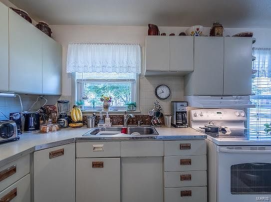 Neat 2-bedroom home with original hardwood floors in the living area and kitchen! This house is darling! Many upgrades along the way within a few years, siding, windows, and furnace with a heat pump (Heat pump-2008), water heater(15), updated bathroom, and LAUNDRY ON THE MAIN AREA washer and dryer included too!! PLUS, a NEW roof shingles and gutters downspout, too, THE KITCHEN HAS PLENTY OF METAL CABINETS, and the refrigerator and range are included! One car garage is attached & nice unfinished basement for storage and shelter! The home is located in a corner lot close to the library, school, restaurants, and stores.