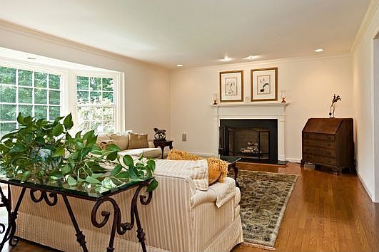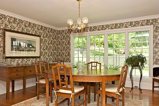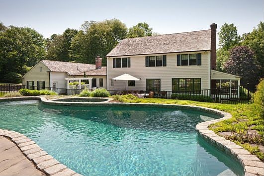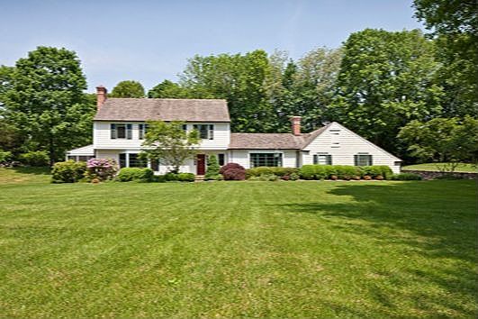 Picturesque two acres provides an idyllic backdrop for this inviting, updated four-bedroom Colonial with covered porch, stone terrace and private three-bedroom Cottage. Settled at the end of cul-de-sac in Greenwich backcountry, w/ a vast rolling front & backyard. Main level showcases wall of windows, fireplace in living room; granite-clad eat-in kitchen open to sunlit family room with fireplace, built-in bookcases, porch and terrace access; dining room and office. Master suite with walk-in closet; three bedrooms and full bath comprise second floor. Lower level features finished playroom. Attached 4 car garage. Two-story 1950 sq.ft. Cottage ideal for use as home office w/ fireplace in living room, eat-in kitchen and en-suite bedroom on first floor w/ two bedrooms, full bath upstairs