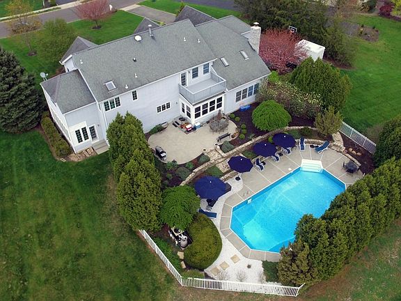 BEAUTIFUL Stately home in secluded Steeplechase Manor, a custom home development. Magnificent property boosting over 4500 square feet of spacious living- perfect for entertaining both indoor and out. The gracious 2-story entry foyer with spiral staircase and double French doors lead to a richly panel office with a wall of built in bookcases and a view of the home’s expansive frontage. Gourmet kitchen with granite counters, stainless appliances and eat-in kitchen with French sliders open to an enclosed updated porch. The elegant cathedral ceiling family room has a floor to ceiling wood burning stone fireplace and tranquil scenes of the backyard. Seamless flow from the formal dining room to the living room. A whole wing of this home is dedicated to an impressive Master bedroom with sitting room, huge walk-in closet, dressing area, en suite with jetted tub and separate shower, his/hers sinks. Additional highlights include a 4 season sunroom, a 2nd floor bedroom with its own balcony overlooking this impeccable property of lush landscaping and in-ground salt water swimming pool, huge laundry room with high-end appliances, underground sprinklers, a second staircase for ease of access to the upper level from the kitchen area, and a 3-car garage. The ultimate in luxurious living all on over 1 1/2 acres nestled in one of Hillsborough’s most distinguished neighborhoods.