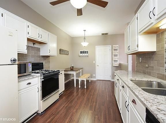 GREAT END UNIT! 3 bedroom 2.5 baths, 2 car garage! Gorgeous, Solid Hardwood Flooring Throughout 1St Floor. Meticulously Maintained! Open, Inviting Kitchen W/ Oak Cabinetry and Large Dedicated Eating Area. Dramatic 2 Story Living Room W/ Gas Fireplace and Plenty Of Windows. Big TV above Fireplace Stays Too! Ceiling Fans in all bedrooms and on first floor. Skylight in Living Room. Large Dining Area with Sliders To Patio. Patio Set Stays Too! Master Bedroom with Walk-In Closet and Private Full Bath! 2nd Floor Laundry For Convenience! Fully Applianced (Refrigerator, Microwave, Washer, Dryer, Dish Washer). 6 Panel Doors. White Trim/ Millwork Enhance the Appeal! Attached Garage. Location, Location, Location: Super Walmart, Meijer, Target and so many other great restaurants and departmental stores within ONLY 2 miles. Close by major intersection: Randall Rd and Algonquin Rd. Nearby highway - I-90 Interstate