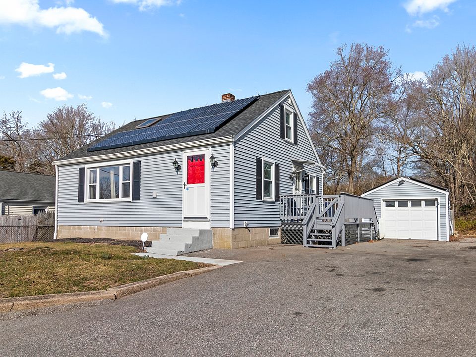 This charming cape is perfect for first-time buyers or those looking to downsize, offering a blend of comfort and convenience. Situated in a quiet neighborhood location, it provides easy access to all that East Lyme has to offer, including orchards, beaches, and nature trails. Upon entering, you'll be greeted by a cozy and inviting living and dining area, perfect for relaxing or entertaining guests. A generously sized bedroom on this level provides convenience and flexibility. On the second floor, you'll find an oversized bedroom flooded with natural light. Outside, a porch and partially fenced-in yard beckon you to unwind and enjoy the outdoors, while the extended detached garage offers ample space for storage or hobbies. One of the standout features of this home is its new roof and solar system, which not only reduces your carbon footprint but also helps offset your electric bill, allowing you to live more sustainably and economically. Don't miss out on the opportunity to make this picture-perfect cape your new sanctuary this spring. With its ideal location, cozy interiors, and thoughtful features, it's sure to capture your heart. Schedule a viewing today and envision yourself living at ease in this lovely East Lyme abode.