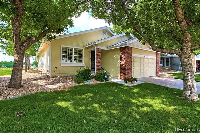 Active adult community one buyer-must be 55+. No rentals allowed. This lovely Cangate 1 Model features 2 newly remodeled bathrooms, new granite counters in kitchen w/backsplash, new plantation shutters throughout main floor! Main floor laundry w/washer & dryer. Two car attached garage, partially finished basement. This patio home is on a low maintenance cul-de-sac, sunny with mature tall trees for shade. Eat in breakfast nook that walks out to shaded two year old trex deck!
