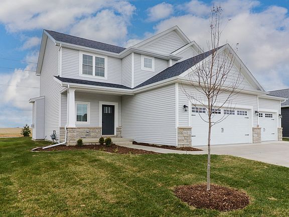 New construction located in Harvest Pointe's latest phase. 2 Story home with 3 bedrooms and 2 1/2 bathrooms. Beautiful grey kitchen cabinets, Calacatta quartz countertops, elegant gold hardware with upgraded lighting, stainless steel appliance package (stove, microwave, dishwasher). Beautiful custom built mantel with sconces, locker system, and wide plank laminate wood flooring throughout the main level. Spacious cathedral ceiling master suite with dual sink vanity, shower & large walk-in closet. Full sod with standard landscaping package. Available now. Rough in for bathroom in the basement. Potential for a rec room, bathroom and bedroom to be finished. **Agent Interest**