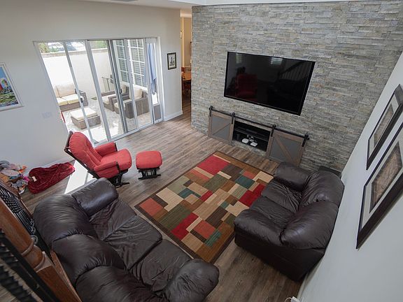 The spacious living room is bathed in natural light, thanks to the large sliding glass doors that offer views of the patio. Moreover, the living room features a stunning built-in entertainment center, ideal for cozy movie nights. The owner's suite is a true retreat, featuring a walk-in closet and a luxurious en-suite bath with a soaking tub and separate shower. Each of the additional bedrooms is generously sized, perfect for family, guests, or a home office. The spacious kitchen, complete with a gas stove and a large island, is a chef's ideal space. The dining area, adjacent to the kitchen, is ideal for hosting dinner parties or enjoying a quiet meal at home. The home is situated on a corner lot which provides a lush lawn, and plenty of space for gardening or play. Located in a desirable resort style neighborhood, this home is close to schools, shopping, and parks, making it perfect for families. This house is prepared to welcome you with its delightful characteristics and contemporary conveniences, including a spacious community pool, restaurant, pickleball courts, and a gym.