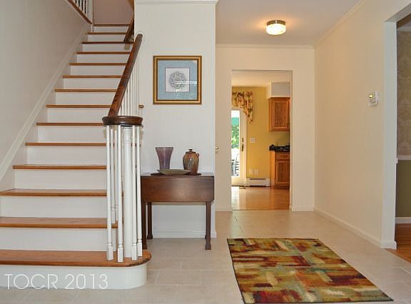 sunfilled 4/5 bedroom, 2.5 bath center hall colonial perfectly situated at the end of a cul de sac within close proximity to schools, crestwood park and lake, downtown center, and transportation. large entry foyer opens to formal dining room on one side and oversized formal living room on the other. French doors off the living room open to a den or possible 5th bedroom. modern eat in kitchen with ample storage, center island,and breakfast area, offers sliders to the large deck overlooking the private backyard. cozy family room features brick fireplace and access to sunroom also with access to deck. conveniently located laundry room and powder room complete the first floor. the second floor features three well sized bedrooms, full bath, master bedroom with master bath and walk in closet. hardwood floors - first floor and second floor. the finished basement makes for a great rec room with sliders to a covered patio area and backyard. additional storage in basement. 2 car attached garage. - Basement: finished, walkout