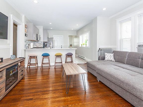 This is a rarely available apartment in an amazing location in Everett! Fully renovated in 2020, this 3-bedroom apartment is available for July 1st move-in! When you walk into this sunny 3 bedroom space, you will be greeted w/ a large foyer or reception area, which leads into the beautiful, open-concept living room w/a spacious kitchen w/ HUGE breakfast island w/ quartz countertops. The kitchen has brand new Cabinets, Fridge, Dishwasher, Stove, Microwave, Garbage Disposal, Quartz Counters w/ breakfast Island Sink, and a spacious Pantry Area, Tile Floors. LED recessed lights were recently installed throughout the living room and kitchen for extra bright lighting. All three bedrooms are very spacious and have plenty of closet space. Laundry is in the basement. There is a shared yard that is perfect for summer bbqs or light gardening. One driveway parking space is included; all other vehicles will get an Everett Resident Parking Sticker. Location is PRIME: Located 1 Mile away from the Wellington Train Station - Orange Line in Medford and just 1 block from the Rt 99 bus, 0.2 from the 97 bus! 1.5 Miles to the new Encore Casino. 1/2 block from Swan Park in Everett, a beautiful park with playgrounds, soccer and baseball fields. Location is just phenomenal, there are so many shops, restaurants, pizza shops, convenience stores, and a Dunkin around the corner! MOVING COST ONLY 1ST AND SECURITY The owner pays for Water, Sewer, trash, and recycling, and 1 parking space is included in the rent. The tenant pays for heat and electricity. A new gas furnace was installed in 2015.