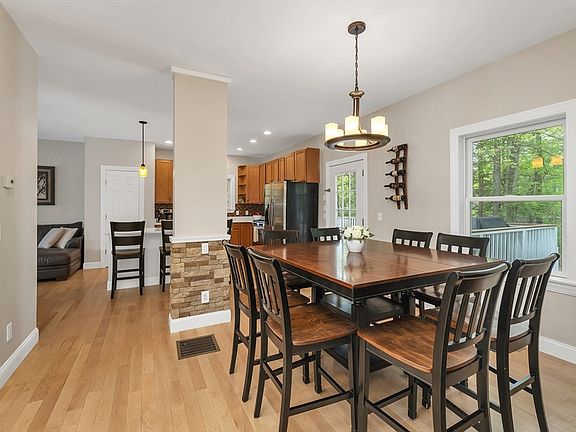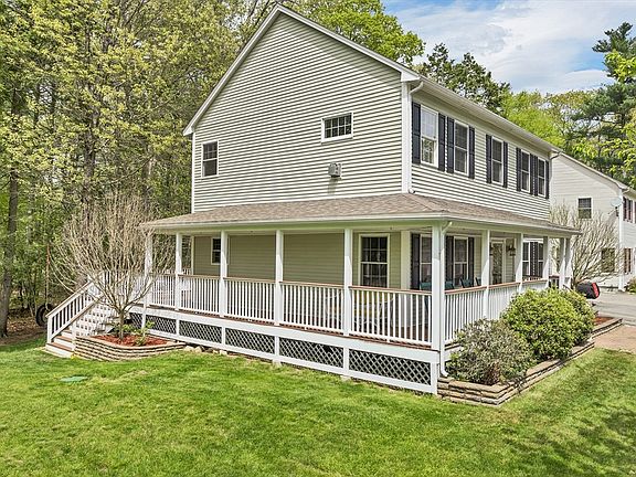 Upscale, turn-key 3-bedroom, 2.5-bath contemporary colonial located on a quiet cul-de-sac. This high-quality home offers a spacious open-concept layout with fresh interior paint, modern kitchen with stainless steel appliances, new countertops, large island, and direct access to back deck. 1st level includes new hardwood flooring, foyer, bonus room for office, dining, or bedroom use, 1/2 bath, and laundry room. Enjoy the charming wraparound farmer’s porch and benefit from an attached 2-car garage with drop-down storage. Upstairs, primary suite offers a gas fireplace, jacuzzi tub, walk-in shower, & walk-in closet, plus 2 additional bedrooms and a full bath. New ceramic tile in bathrooms. Finished basement provides extra living space ideal for a family room, recreation, or workshop. Features include easy-care vinyl siding, FHA heat, central A/C, and commuter-friendly access. No condo fees! Minutes from NH award winning beaches. Pre-inspected for peace of mind.