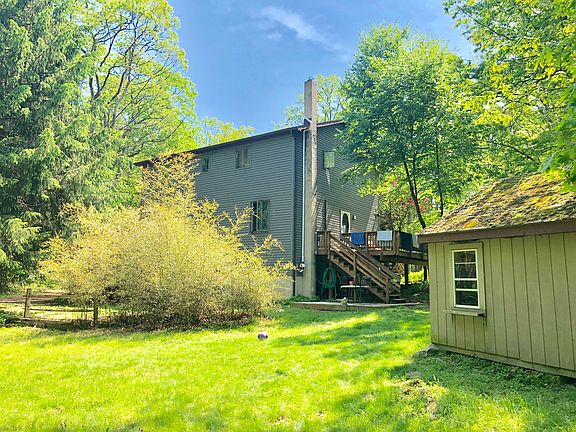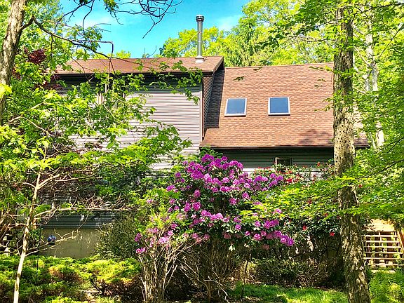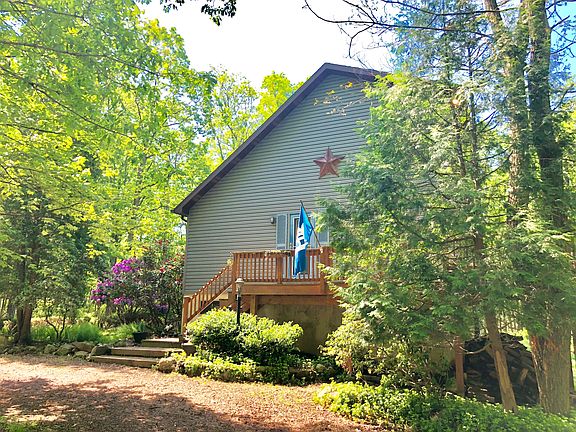 Quiet mountain living near plenty of Pocono action! Check out this 3 bedroom, 2.5 bath home set on over 1.5 acres in beautiful Autumn Mountain Woodlands! Relax in the spacious, vaulted ceiling FR(with 2 huge skylights),by the Wood burning fireplace, or walk through to a separate large Living room which has access to one of this homes 2 huge decks.(this deck has outdoor prewired speakers) Open to the living room is a generously sized dining/multi-use room, which then connects to the kitchen. The kitchen features a convenient hanging pot rack, plenty of cabinets/counter space, & included appliances: stove, built in microwave, dishwasher and refrigerator. Also included are the nearby, main level washer and dryer! A breakfast area lies next to the kitchen with french door access to the 2nd deck for BBQ convenience, and a short walk to the half bath. A deck view of the partially cleared back yard with a swing post, a stone fire pit area, a drained prewired pond, and a tire swing! A view of a small patio area (which is at the base of the other deck) is off to your left, intended for a hot tub(prewired for hot tub). A nice size storage building is also included with greenhouse panels that offer plenty of natural light inside. When your ready to sleep, the 2nd level is sure to please, offering a gigantic master with full master bath, nice size bedrooms 2 & 3 with an adjoining "Jack and Jill" full bath! All rooms on the second level have individual thermostats with electric heat for comfort. The catwalk hallway overlooks the FR and nicely connects all of the bedrooms! Plenty of closet space is offered throughout! Basement area includes an exercise room with full mirror wall, separate door to 1 door garage with opener, and equal storage space next to it. Oil/hot water services exercise room and main level. With all of it's offerings, quiet location, and available amenities, this home has something for everyone! Available amenities offer access to a lake, swimming pool, playground, outdoor basketball court and a clubhouse. Nearby golfing, hunting, fishing and skiing. Near ski resorts Big Boulder and Jack Frost. Near Routes 80, 81 and 476 for a convenient trip anywhere! Schedule your showing today!