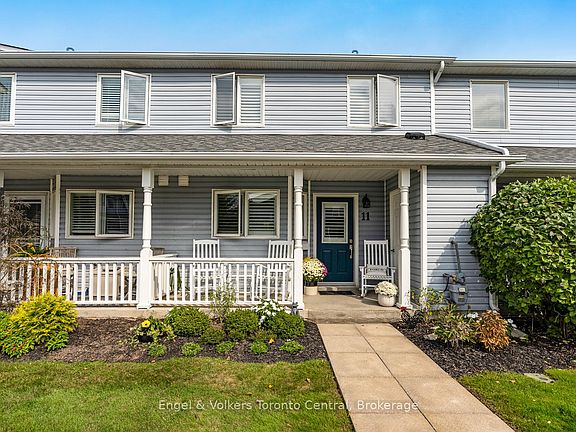 Welcome to 11 Sundial Court. This recently renovated 3bed/2.5 bath condo offers relaxed living in a sought after enclave of homes between Collingwood and Blue Mountain. The current owners have added new flooring, cabinetry and appliances, window coverings and windows during their time of ownership. The unit offers a covered porch for your morning coffee and a large private deck overlooking a natural area with mature trees and a large pond...sit in the chairs and watch the water fowl in the pond. The spacious primary bedroom has a 4-piece ensuite and a balcony looking out to the pond area. Two other bedrooms and another 4-piece washroom can be found on the second floor. The open concept kitchen/dining and living room on the main floor are ideal for family activities or for entertaining. Relax by the gas fireplace after a day of outdoor activities. A large, nearby, inground pool offers relief from hot temperatures on those summer days. This condo is a five minute drive to both Collingwood and Blue Mountain and a short walk or bike ride to the Georgian Trail.