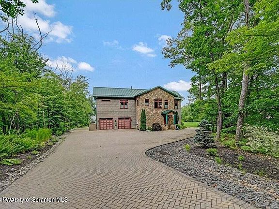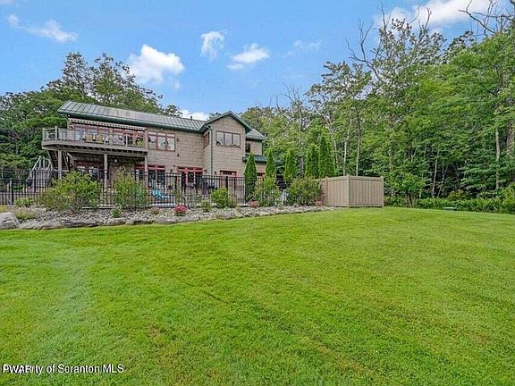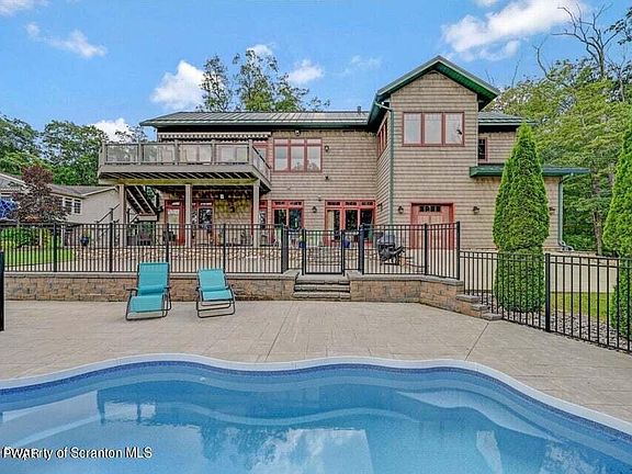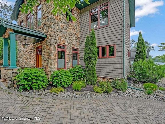 This magnificent Moosic Lakes lakefront home was designed by Architect Valerie Boom. who specializes in beach like floor plans . In using her design, the owner was able to take advantage of the elaborate views, sunlight & entertaining space. The second floor living area has radiant heat in the Brazilian cherry wood floors. cathedral clear pine ceilings, hand crafted wood beams expansive windows & doors with custom window blinds, stone faced gas fireplace, lots of built-in & a custom built wet bar. The kitchen is equipped with custom cherry cabinet built by Mecca Cabinetry. stainless steal appliances, granite counter tops, designer backsplash, a massive kitchen island that separates the dining room & off the kitchen is a pantry that also serves as the laundry room. The primary bedroom, Beds Description: 1 BED 2nd, Beds Description: 2+Bed1st, Beds Description: 1 BED 2nd, Baths: 1 Bath Level 2, Baths: 1/2 Bath Lev 2, Baths: 2 Bath Lev 1, Baths: Modern, Eating Area: Dining Area, Eating Area: Modern KT